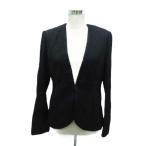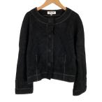 ハナエモリ HANAE MORI 長袖ノーカラジャケット ウール 黒 ブラック 38 M相当 レディース