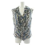 ハナエモリ HANAE MORI シャツ ブラウス 40 ベージュ 青 ブルー 花柄 Vネック ノースリーブ /AN22 ■GY61 レディース
