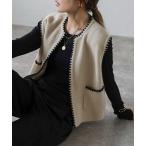 ベスト ジレ ハマグリステッチニットベスト レディース