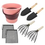 これ1つで準備完了 潮干狩りセット 2〜4人用 折り畳みバケツ スコップ 収納袋付き 貝掘り アサリ ハマグリ MDM(ピンク, 忍者熊手)