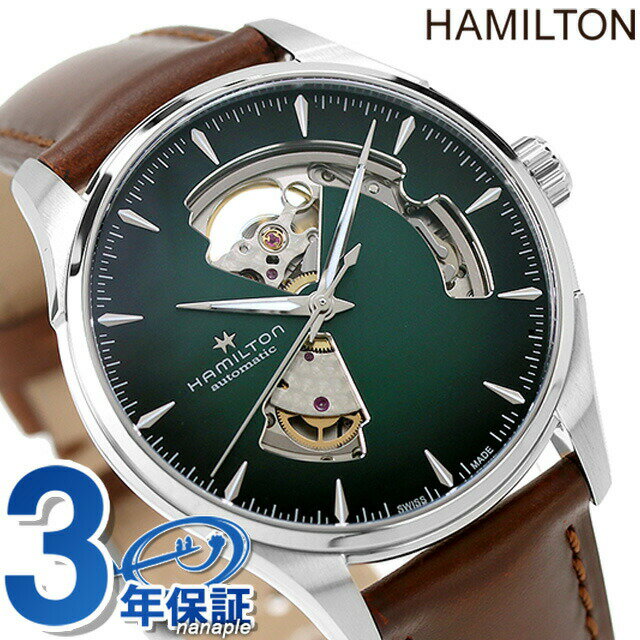 \10%OFFクーポン★2日10時迄/ ハミルトン ジャズマスター オープンハート 自動巻き 腕時計 メンズ オープンハート 革ベルト HAMILTON H32675560 アナログ グリーン ブラウン スイス製 ブランド おしゃれ 防水 プレゼント 男性 実用的