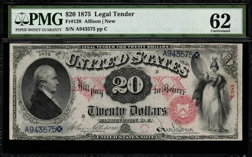 1875年 20ドル 法定通貨 FR-128 - グレード PMG 62 - 未使用 - ハミルトン