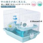 ハムスターケージ ハムスターハウス 飼育かご 広い 透明 アクリル 組立簡単 小屋 大空間 55cm 前扉 分離式 エサ皿 給水ボウル