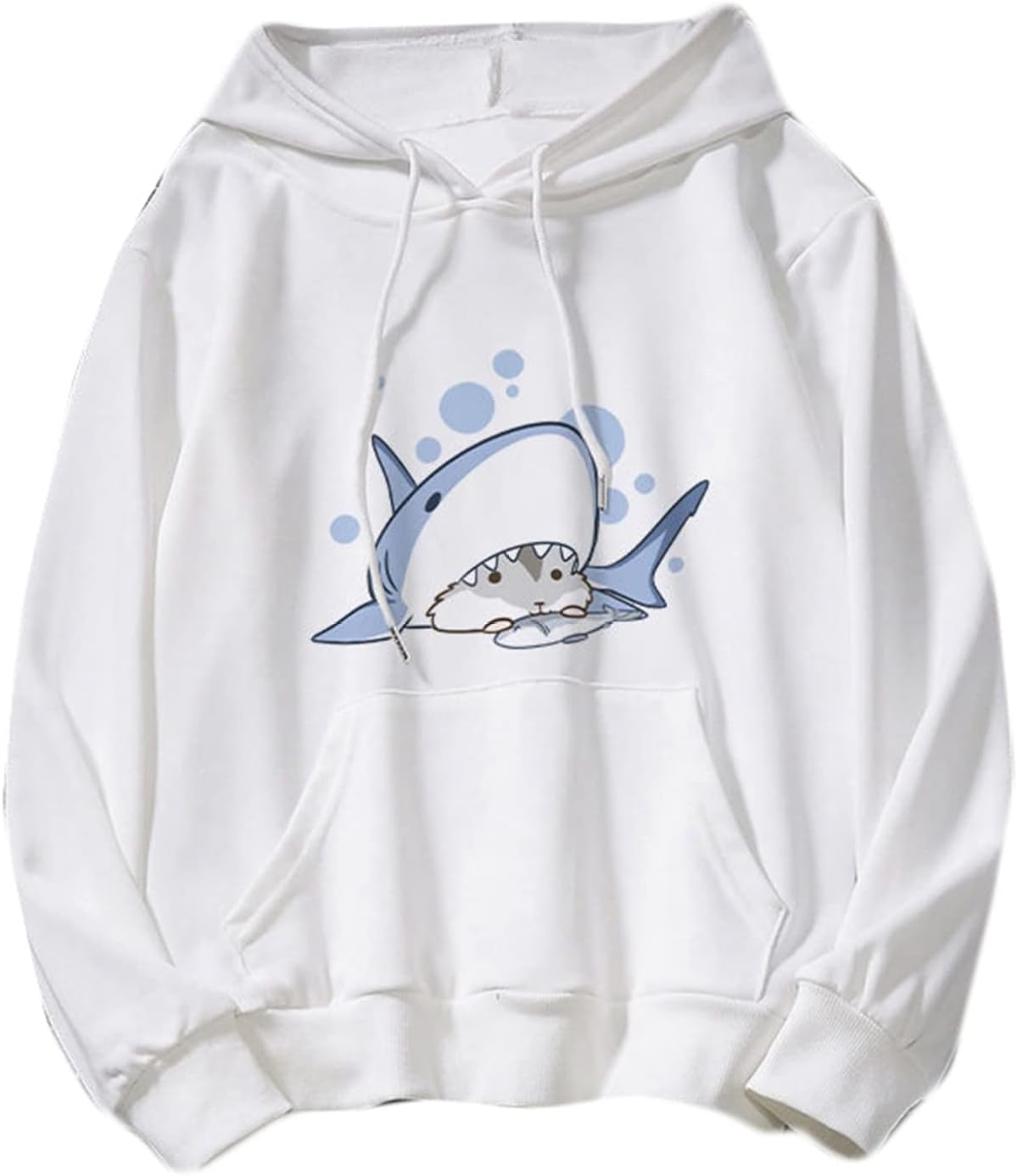 【20%OFFクーポン〜】パーカー トレーナー 男性 シンプル かわいい サメ柄 ハムスター柄 長袖 カジュアル クール 丈長め ビッグシルエット ラウンドネック 体型パカー トップス プルオーバー ソフト オシャレ クライミ