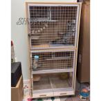 ウサギ チンチラ ケージ 大型 2層 木製 3ドア 2巣 車輪と引き出しトレイ付き 60cm * 40cm * 120cm 茶色