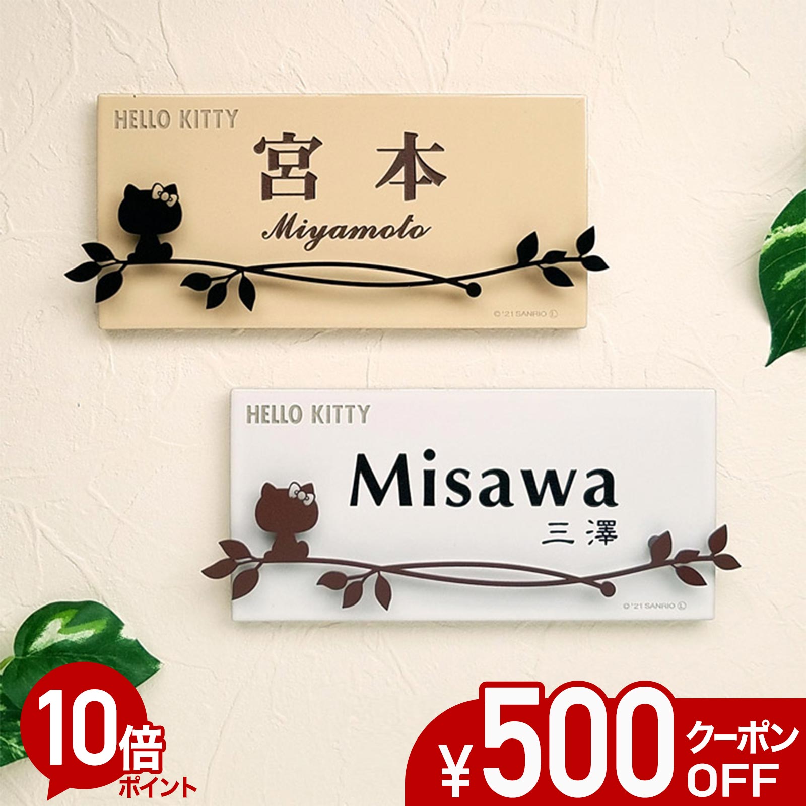 【500円OFFクーポン/P10倍】 表札 タイル 【 ハローキティ アイアン風デコ 】戸建て 長方形 KTI-RD2 おしゃれ 貼り付け 簡単 取り付け キット付き 機能門柱 門柱 かわいい 漢字 筆記体 手書き ローマ字 二世帯 番地 キティちゃん サンリオ キャラクター