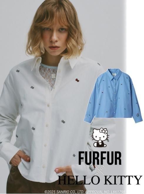 【即日出荷】(期間限定10%OFF&500円OFF) FURFUR ファーファー HELLO KITTYリボン刺繍シャツ 25秋冬. RWFT261040 シャツ・ブラウス 【KITTY】コラボ トップス【新作】