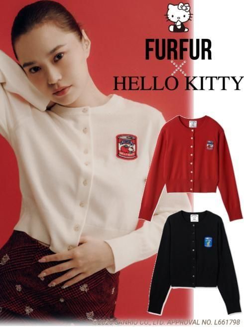 【即日出荷】(期間限定10%OFF&500円OFF) FURFUR ファーファー HELLO KITTY ワッペンカーディガン 25秋冬. RWNT261039 カーディガン 【KITTY】コラボ トップス【新作】