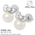 ハローキティ あこやパール プラチナ ピアス ダイヤモンド サンリオ キティちゃん 2P 両耳 リボン Pt900 スタッドピアス パール 真珠