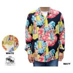 Kona Bay Hawaii コナベイハワイ 長袖アロハシャツ フラガール HULA GIRL ハワイ製 レーヨン ネイビー 白 ホワイト