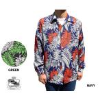Kona Bay Hawaii コナベイハワイ 長袖アロハシャツ リーブス ハワイ製 レーヨン ネイビー 緑 グリーン