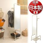 キャスター付きミラーハンガー スタンドミラー ハンガーラック 姿見 鏡 コートハンガー ハンガーポール スチール 金属製 ドレッサー 国内生産 国産 薄型 通販