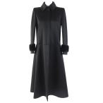 極美品◎FENDI フェンディ 2019年製 FF8679 袖口ミンク ハーフジップ 比翼 ロングコート ブラック 38 ハンガー・ガーメント付き 正規品