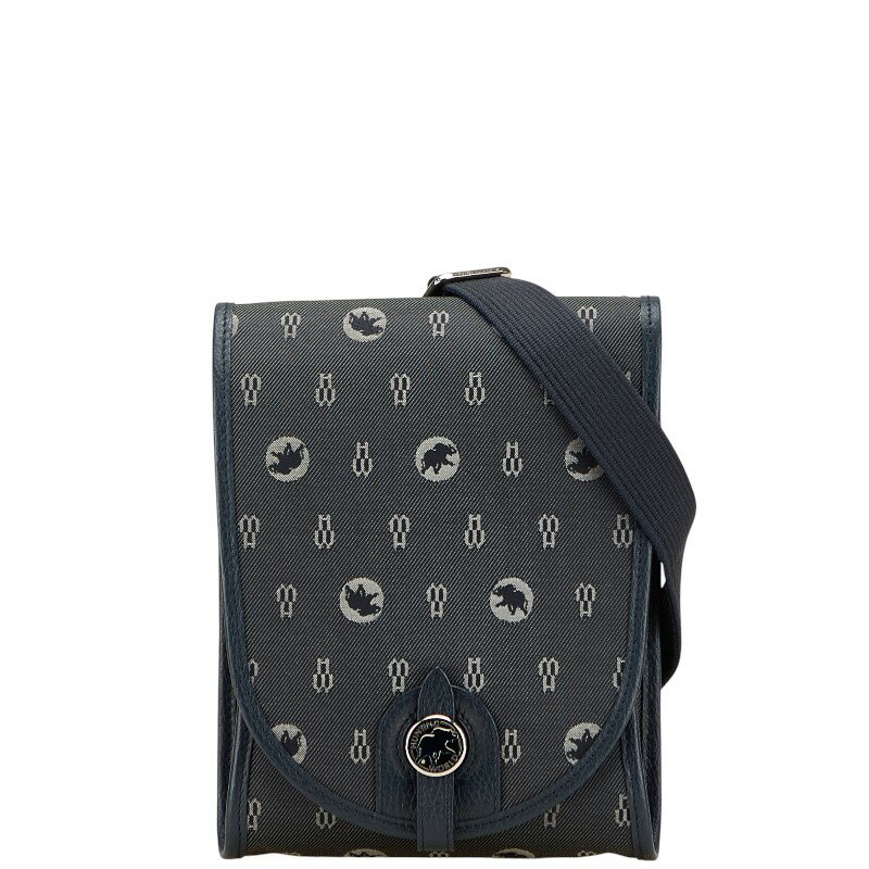 ハンティングワールド HUNTING WORLD ショルダーバッグ 斜めがけ ロゴ キャンバス レザー 総柄 紺 ネイビー ■GY11 /MQ メンズ