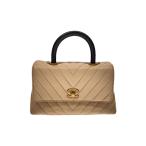 CHANEL◆ココハンドルXS/リザード/ハンドバッグ/レザー/クリーム//