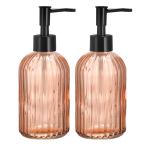 uxcell ソープディスペンサーセット- 17Oz ポンプ付き ガラス皿 ハンドソープディスペンサー キッチン バスルーム ブラウン 2個入り