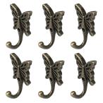 uxcell ウォールマウントローブフック 亜鉛合金 蝶型DIYフックコートタオル 壁バスルームカーテンハンガー ネジ付き ブロン音 6個