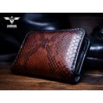 パイソン・カードケース ビンテージ染めブラウン 手縫い・ハンドメイドカード入れ
