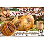 【ふるさと納税】無添加ローストチキンのごちそうパーティーセット 3〜4人前/ローストチキン1羽850g、ハーブソルト1個50g、ポークソーセージ5本入り350g、ベーコン200g [ローストチキン ハーブソルト ソーセージ ベーコン 無添加 国産]