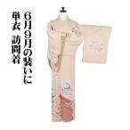 単衣 訪問着 正絹 薄橙色 ベージュ 赤紫 ハープ演奏 踊り子 15号 Lサイズ ki32038 未使用品 夏着物 レディース セミフォーマル 送料無料