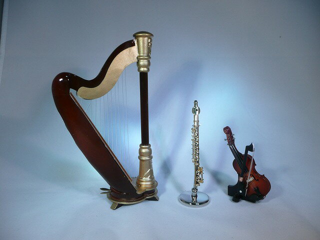 ミニチュア楽器ブローチ ハープ/弓形 ゴールド&シルバーツートーンカラー