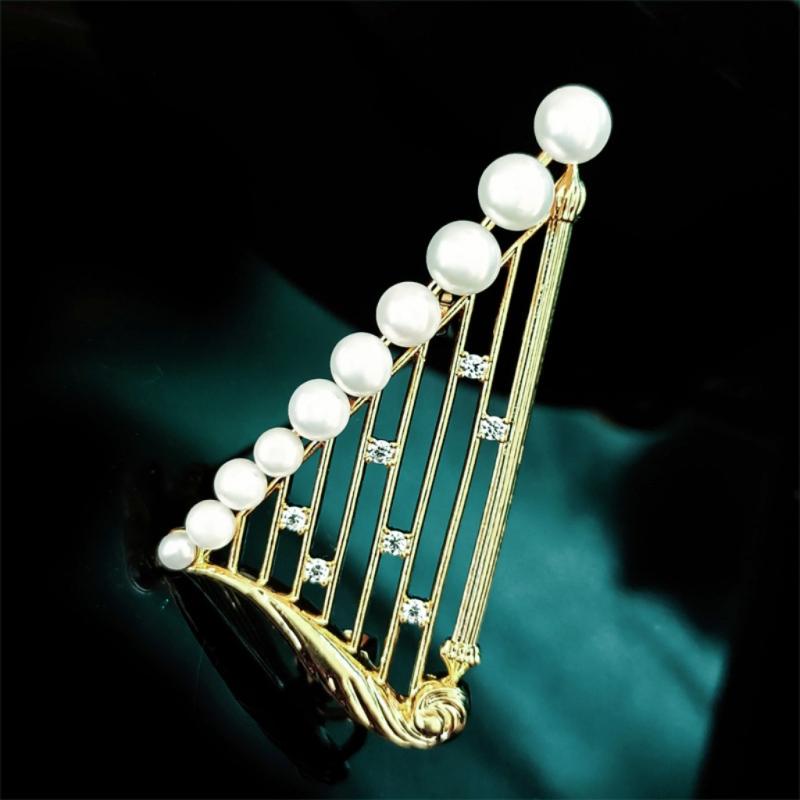 竪琴 ブローチ レディース おしゃれ フェミニン 楽器 スーツ アクセサリー 高級感 女性用 パール ハープ クラシック エレガント ピン 文学的 芸術的 ジュエリーギフト