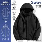 マウンテンパーカー メンズ 登山服 防水 防風 3way 暖かい 多機能 フリース 一年通用 キャンプ フード付き スキー 春 秋 冬 アウトドア