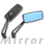 汎用 ミラー 角型 スクエア バレンミラー ブルーレンズ マットブラック 取り付けネジ10mm/8mm 左右セット 逆ネジ対応 ホリゾンタル レクタングル