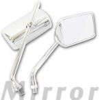 汎用 メッキ スクエアミラー 角型ミラー 取り付けネジ10mm 8mm ハーレー用ステー 正ネジ 逆ネジアダプター付き 左右2個セット 補修