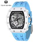 TSAR BOMBA サーボンバ エレメンタル メンズ腕時計 ライトブルー/ホワイト TB8208C-06 自動巻き スケルトン セラミック ラバーストラップ