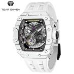 TSAR BOMBA サーボンバ エレメンタル メンズ腕時計 ホワイト TB8208CF-35 自動巻き フルスケルトン カーボンベゼル ラバーストラップ