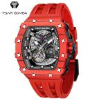 TSAR BOMBA サーボンバ エレメンタル メンズ腕時計 レッド TB8208CF-37 自動巻き フルスケルトン カーボンベゼル ラバーストラップ
