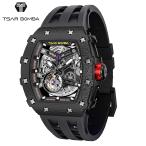 TSAR BOMBA サーボンバ エレメンタル メンズ腕時計 ブラック TB8208CF-38 自動巻き フルスケルトン カーボンベゼル ラバーストラップ