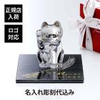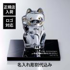 Baccarat バカラ まねき猫 Mサイズ 座布団付き・ITOKO 伊と幸 シルクガラス 台座 黒染金彩墨描 20×20cm セット 名入れ代込 名入れ ギフト 祝い 置物 記念品