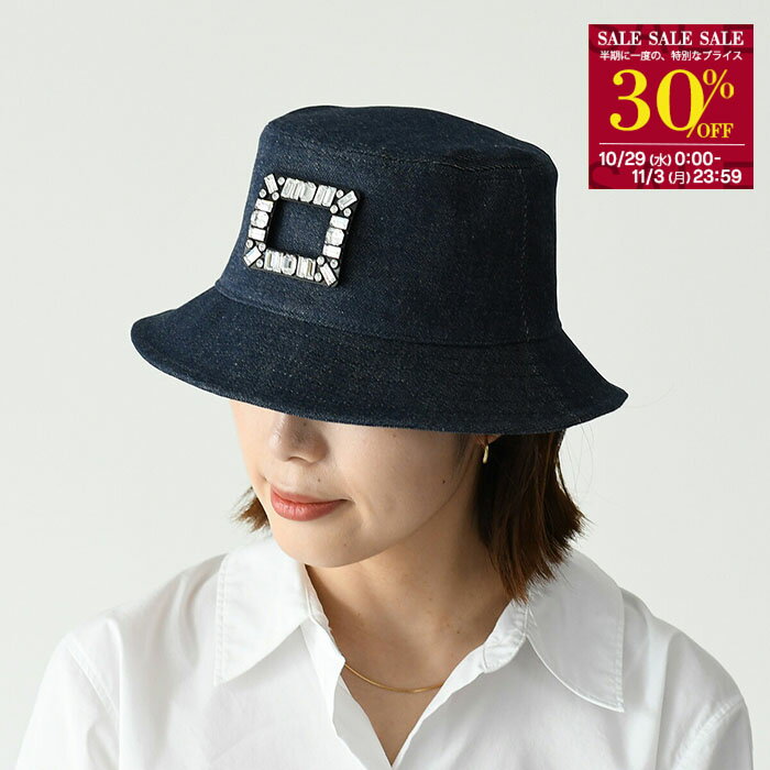 【30%OFF対象|決算セール】Roger Vivier ロジェ ヴィヴィエ バケットハット 帽子 バケハ デニム RQWH0080100EMN ヴィヴスケート ビジューバックル デニムバケットハット レディース ブルー インディゴブルー