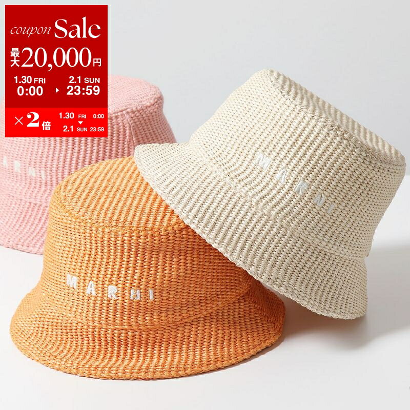 MARNI マルニ バケットハット CLMC0067S1 UAC004 レディース ロゴ刺繍 フェイクラフィア コットン×ナイロン 帽子 カラー3色