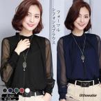 シャツ レディース 長袖 ブラウス オフィス 秋 シフォンシャツ 立ち襟 お洒落 上品 大人 通勤 OL 入園式 母親 30代 40代 ゆったり