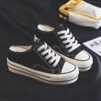 スニーカーサンダル ャンバス かかとなし レースアップ レディース 厚底 インヒール 7cm up スリッパ サンダル サボ 履きやすい 歩きやすい カジュアル 春夏