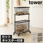 ランドリーバスケット 2段 洗濯カゴ 脱衣所 おしゃれ 省スペース ランドリー収納 バスグッズ 北欧 山崎実業 ランドリーワゴン+バスケット タワー スリム tower