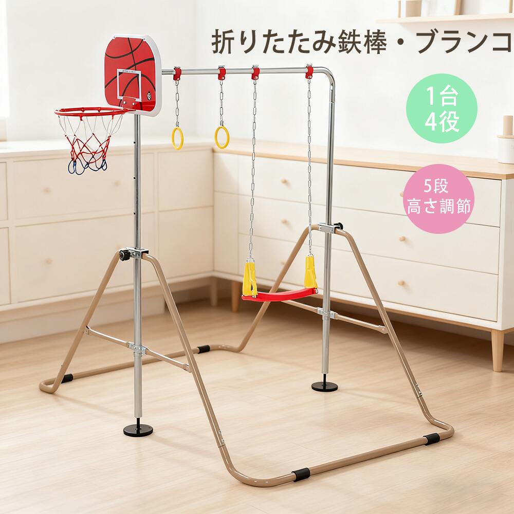 【10%OFFクーポン】送料無料 レビュー特典 鉄棒 ブランコ 室内 子供用 折りたたみ 高さ5段階調整 エクササイズ 室内用 ぶらさがり チンニング フィットネス 全身ストレッチ バスケットゴール付き 吊り輪付き スポーツ 運動 プレゼント ギフト