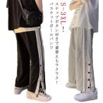 サイドボタン パンツ スウェットパンツ メンズ ロングパンツ スポーツパンツ バスケットボールパンツ ジャージパンツ サイド開き サイドスリット サル