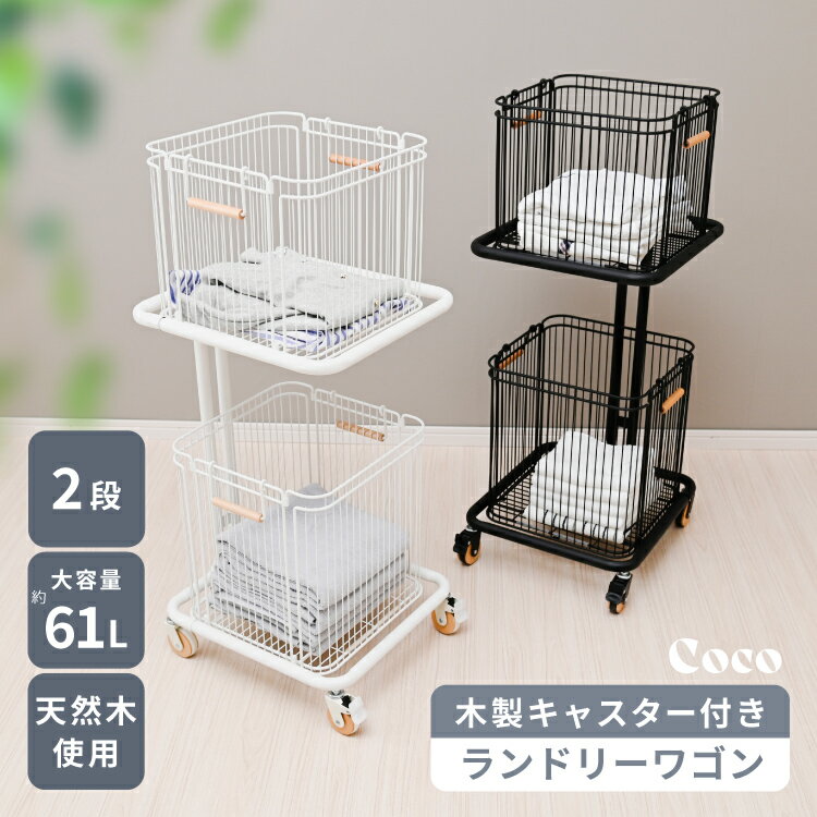【期間限定10%OFF】ランドリーバスケット 2段 大容量 角型 洗濯かご 洗濯カゴ おしゃれ ランドリーラック ランドリーワゴン 北欧 ランドリー収納 キッチンワゴン キッチンラック 洗濯物入れ キャスター ダークブラウン ホワイト 白 グレー リビング 洗面所 収納 アウトレット