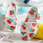 女児 バススリッパ イチゴ柄 女の子 スリッパ 夏 ルームシューズ チェリー柄 ピーチ柄 夏スリッパ キッズ ビーサン 海 プール サンダル