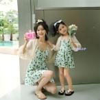 水着 レディース 体型カバー ワンピース オールインワン 親子 ペアルック かわいい おしゃれ シースルー 透け感 フレアスリーブ ノンワイヤー パッド付き バス