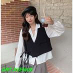 秋新作 大きいサイズ レディース 2枚組 セットアップ シャツ ベスト ショート丈 シンプル 長袖 4XL 3XL