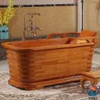 屋内バスルーム用の自立した木製バスタブ スパセンターソリッドウッドスタンド単独の浴槽椅子とポップアップドレイン 手すり