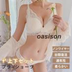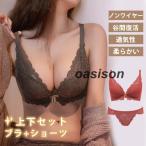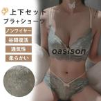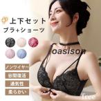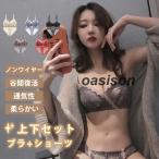 ショーツセット レディース ブラジャー ノンワイヤー ブラセット 美胸 ブラショーツセット 谷間 下着 女性 上下セット レース バストケア