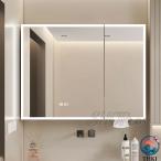 バスルームミラーキャビネット LEDライト付き 防霧機能 収納 浴室 鏡箱 壁掛け ウォールミラー|防水アルミフレーム スリム設計 多機能 シャワールーム 洗面化粧
