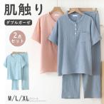 パジャマ レディース 2点セット ルームウェア 二重ガーゼ レディース パジャマ ルームウェア 綿 プルオーバー半袖 長ズボン 春 夏 秋 冬 ダブルガーゼ