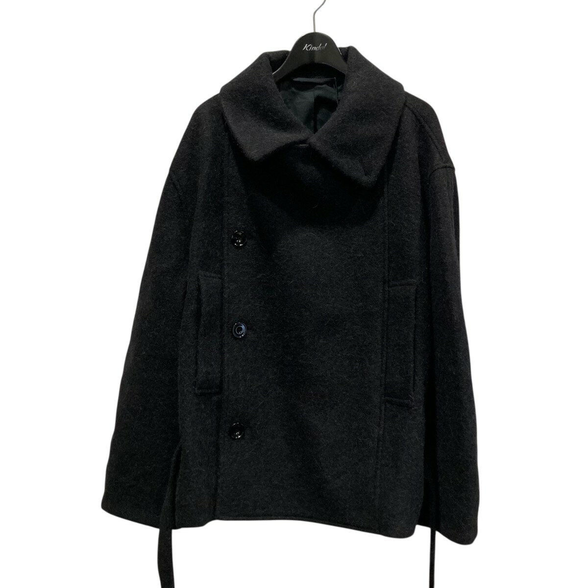 【中古】LEMAIREShort asymmetrical bathrobe coat ショートアシンメトリーバスローブコート ブラック サイズ:36【価格見直し】